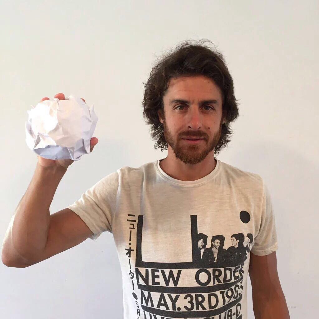 folhas de papel amarrotadas pelo estudo. Na foto, El Payaso, autor de